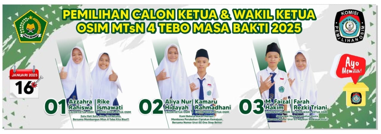 Rimbo Mulyo, Sabtu 11 April 2026, Madrasah Tsanawiyah Negeri (MTsN) 4 Tebo sukses melaksanakan kegiatan Tes Kemampuan Akademik (TKA) yang berlangsung selama dua hari berturut-turut. Kegiatan yang menjadi barometer pencapaian...