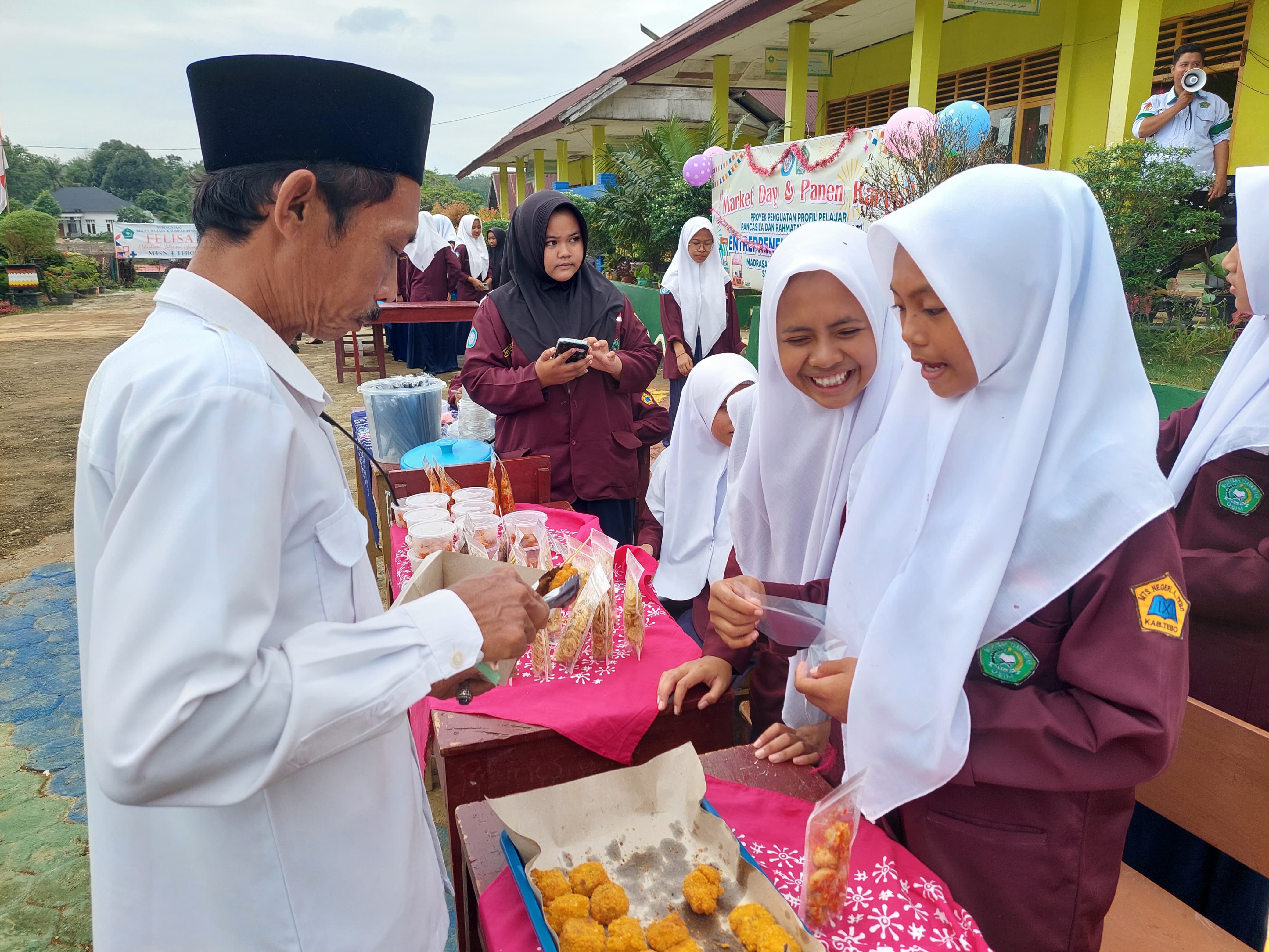 Tebo—(MTsN 4 Tebo) MTsN 4 Tebo gelar Market Day, Selasa (21/01/2025). Market day ini diadakan di lapangan MTsN 4 Tebo diikuti oleh 3 kelas. Masing-masing kelas mendapat jatah stand. Market day merupakan kegiatan untuk menunjukkan bakat berwirausaha siswa. Para siswa  menjual berbagai hasil karya peserta didik utamanya dalam hal kreasi makanan dan minuman. Sebagai madrasah plus keterampilan, dimana salah satu keterampilan yang ada di MTs Negeri 4 Tebo adalah keterampilan tata boga. Marketday ini membantu siswa untuk mengekspresikan diri, bekerjasama dan unjuk kreatifitas.