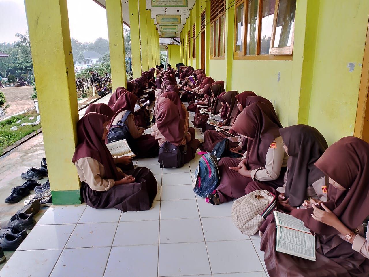 Rimbo Mulyo - Membiasakan diri dengan hal baik sejak dini adalah kunci kesuksesan. Hal inilah yang tengah diterapkan oleh siswa-siswi MTsN 4 Tebo. Setiap hari Jumat pagi,kegiatan ini diikuti oleh seluruh siawa, mereka memulai harinya dengan membaca Surat Al-Kahfi secara bersama-sama. Kegiatan ini tidak hanya melatih hafalan, namun juga mendekatkan diri pada Al-Quran dan meraih keberkahan.