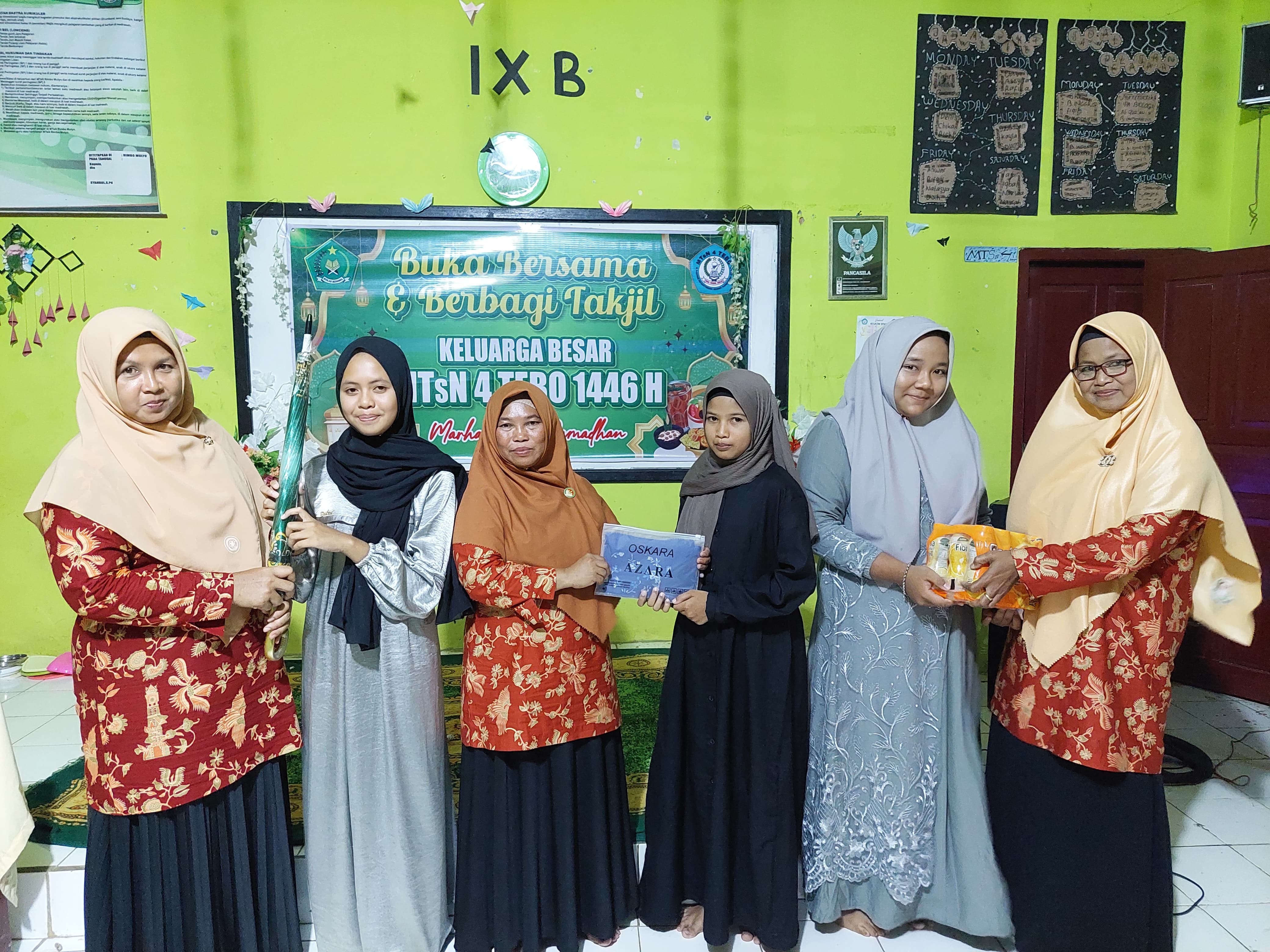 Kegiatan buka bersama ini juga diisi dengan ceramah agama dan pembagian takjil kepada warga sekitar serta ditutup dengan pembagian doorprize. MTsN 4 Tebo berharap kegiatan ini dapat meningkatkan kualitas keagamaan dan kebersamaan antara siswa dan guru. (Juwita)