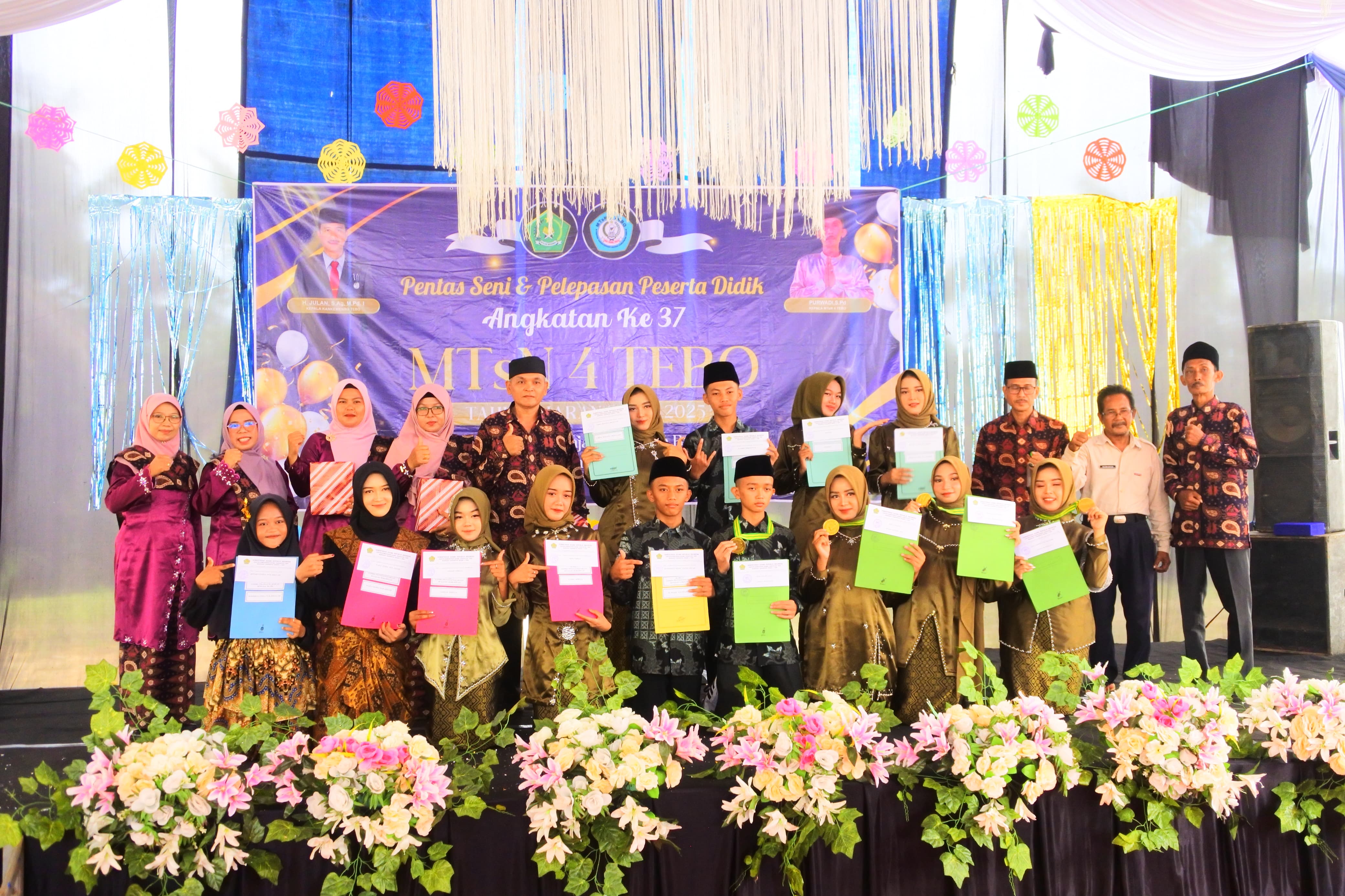 MTs Negeri 4 Tebo mengadakan acara pelepasan kelas IX yang berlangsung meriah dan penuh kegembiraan. Acara ini dihadiri oleh kakankemenag Tebo beserta istri, serta tamu kehormatan lainnya turut pula hadir guru beserta orang tua kelas IX.