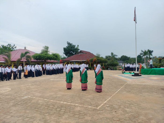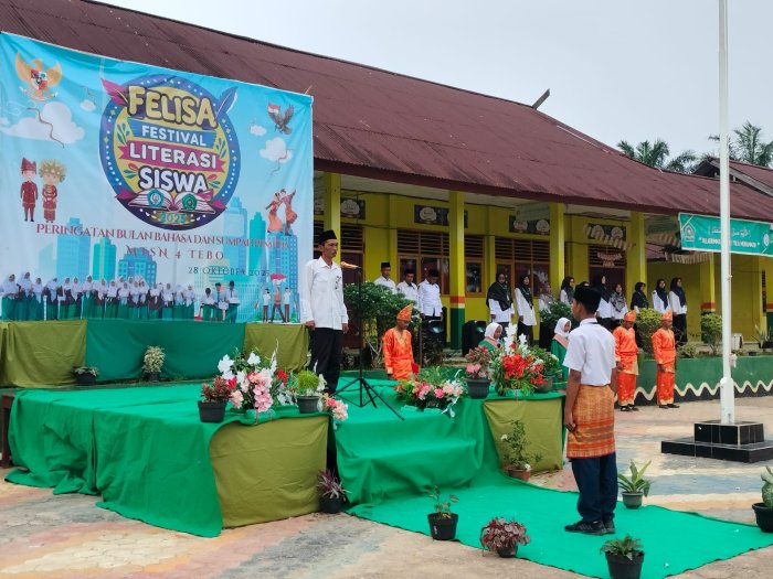 Rimbo Mulyo, 28 Oktober 2025 Seluruh keluarga besar Madrasah Tsanawiyah Negeri (MTsN) 4 Tebo hari ini menggelar upacara bendera dengan khidmat dalam rangka memperingati Hari Sumpah Pemuda ke-97 yang jatuh setiap tanggal 28 Oktober. Upacara ini dilaksanakan di lapangan madrasah dengan diikuti oleh seluruh siswa, guru, dan staf tata usaha.