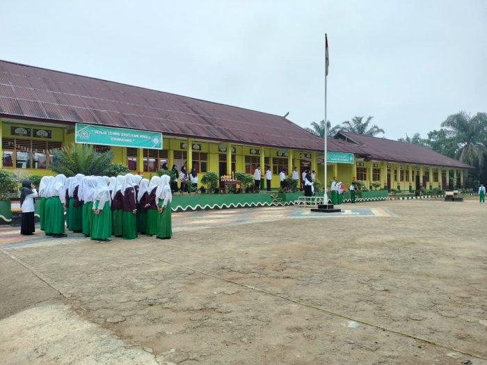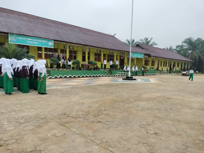 Rimbo Mulyo, 3 November 2025, Suasana khidmat terasa di lapangan MTsN 4 Tebo, Rimbo Mulyo, Kabupaten Tebo, pada Senin (3/11/2025) pagi. Upacara bendera rutin kali ini berjalan lancar dengan petugas upacara yang seluruhnya berasal dari Kelas VII B. Para siswa tersebut dipercaya untuk mengemban tugas penting ini dan berhasil melaksanakan seluruh rangkaian upacara dengan penuh tanggung jawab dan disiplin.