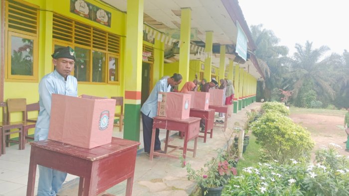 Pemilihan Ketua dan Wakil Ketua OSIM dilaksanakan di halaman MTsN 4 Tebo. Proses pemungutan suara dilakukan secara manual dengan kertas suara yang kemudian dimasukkan ke kotak suara. Guru-guru dan staf sekolah berpartisipasi dalam pemilihan ini, menciptakan suasana demokrasi yang terbuka. Panitia pemilihan, yang terdiri dari anggota OSIM dan guru pendamping, memastikan proses pemilihan berjalan dengan lancar, dan tertib.