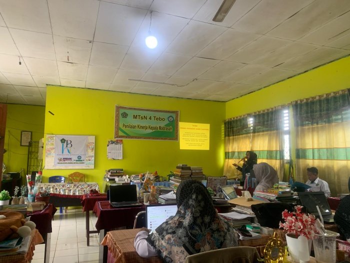 Rimbo Mulyo, 20 Januari 2026 MTsN 4 Tebo , di ruang guru MTsN 4 Tebo, dewan guru mengikuti kegiatan sosialisasi tentang pencegahan kanker, yang diselenggarakan oleh Yayasan Pencegahan Kanker Nusantara. Kegiatan utama sosialisasi ini adalah menjelaskan tentang jenis kanker umum seperti ( serviks, payudara,paru, gaya hidup, lingkungan, genetic dan lain sebagainya. Kegiatan dimulai dari perkenalan dari narasumber lalu dilanjutkan dengan pemaparan materi oleh narasumber dari yayasan tersebut, yang menjelaskan berbagai jenis kanker yang umum terjadi, faktor risiko, serta tanda-tanda yang harus diwaspadai. Materi yang disampaikan juga mencakup langkah-langkah pencegahan, seperti pola hidup sehat, deteksi dini, dan pentingnya pemeriksaan kesehatan secara rutin. Para guru yang hadir tampak antusias menyimak penjelasan, yang diharapkan dapat menambah wawasan mereka tentang penyakit ini.