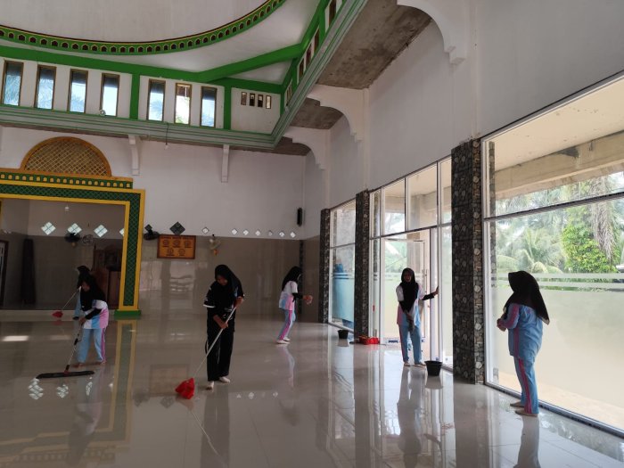 Rimbo Mulyo siswa-siswi MTsN 4 Tebo menggelar Bakti Sosial di masjid-masjid terdekat , pada Jum’at (13/02/2026).